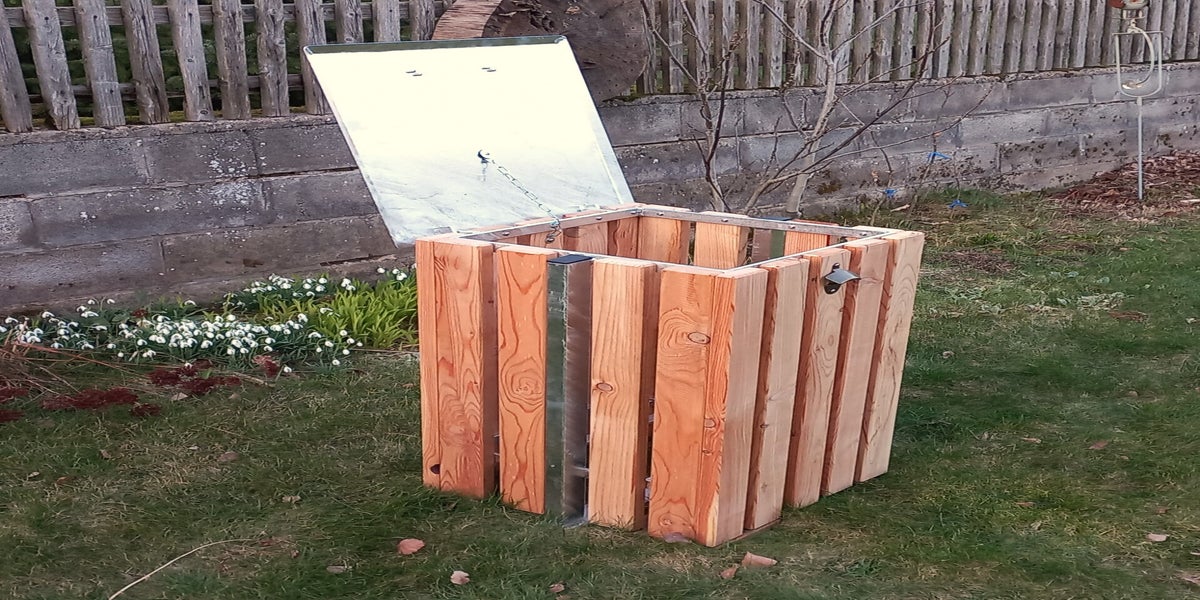 Der Innenbehälter aus verzinktem Blech ist zum Entnehmen und hat ein Fassungsvermögen von 55 Litern.