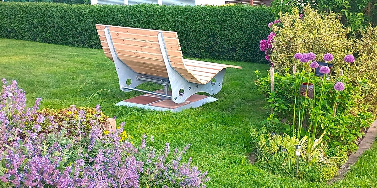 Als Fundament für die drehbare Wellenliege dient der XXL Sonnenschirmständer.